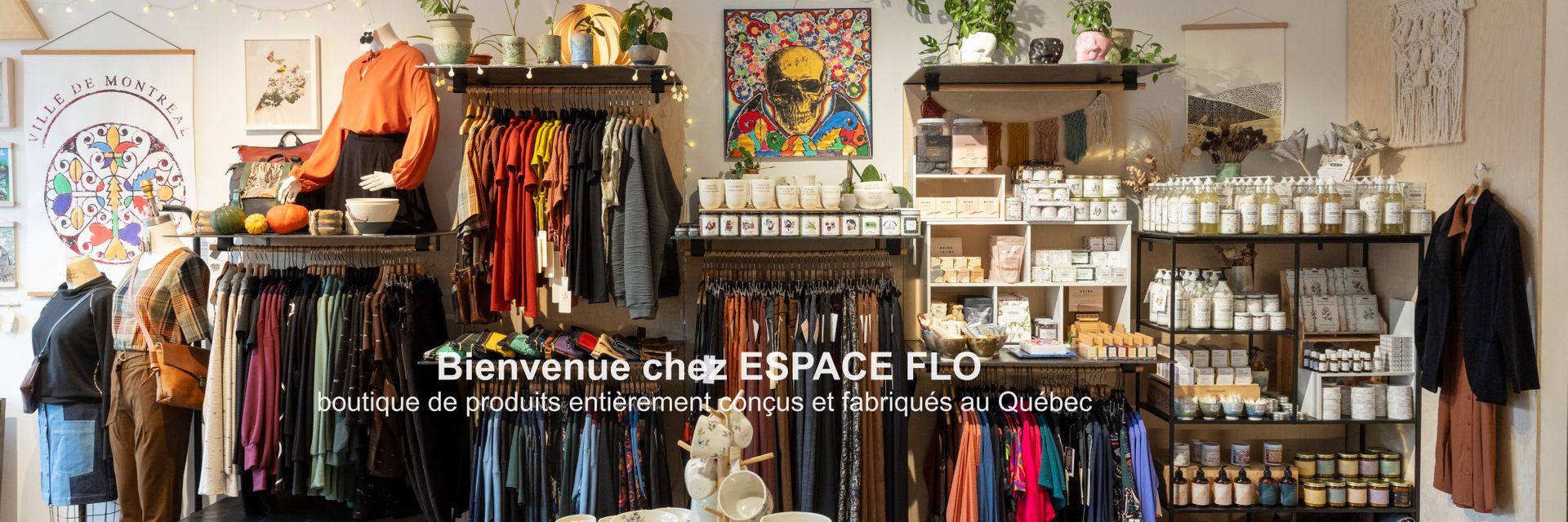 ESPACE FLO est une boutique de produits entièrement conçus et fabriqués au Québec qui est située en plein cœur de la rue Fleury Ouest dans le quartier Ahuntsic à Montréal.