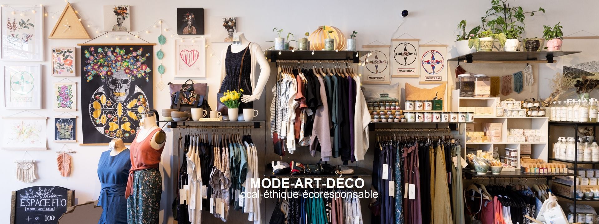 ESPACE FLO est une boutique de produits entièrement conçus et fabriqués au Québec qui est située en plein cœur de la rue Fleury Ouest dans le quartier Ahuntsic à Montréal.