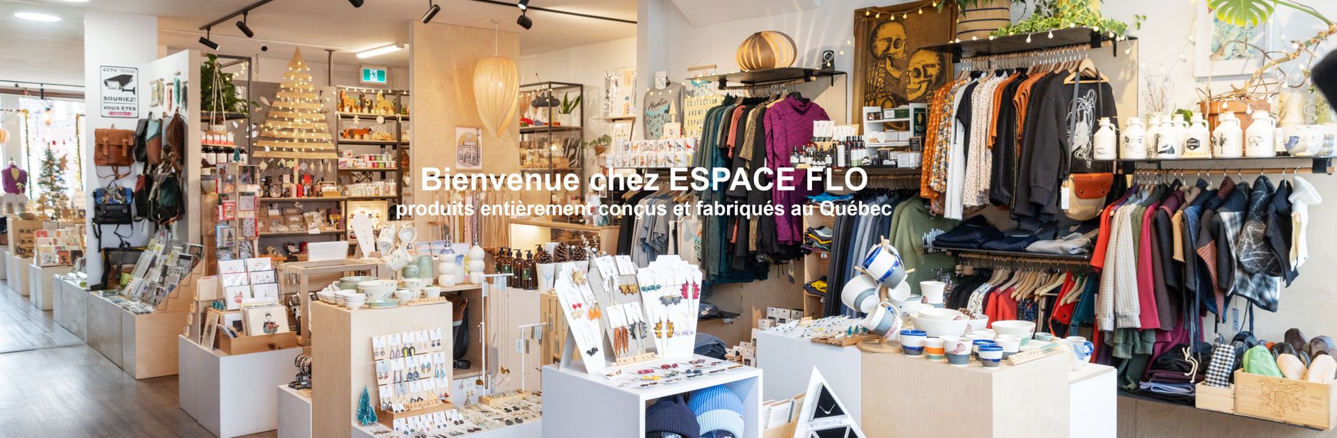ESPACE FLO est une boutique de produits entièrement conçus et fabriqués au Québec qui est située en plein cœur de la rue Fleury Ouest dans le quartier Ahuntsic à Montréal.